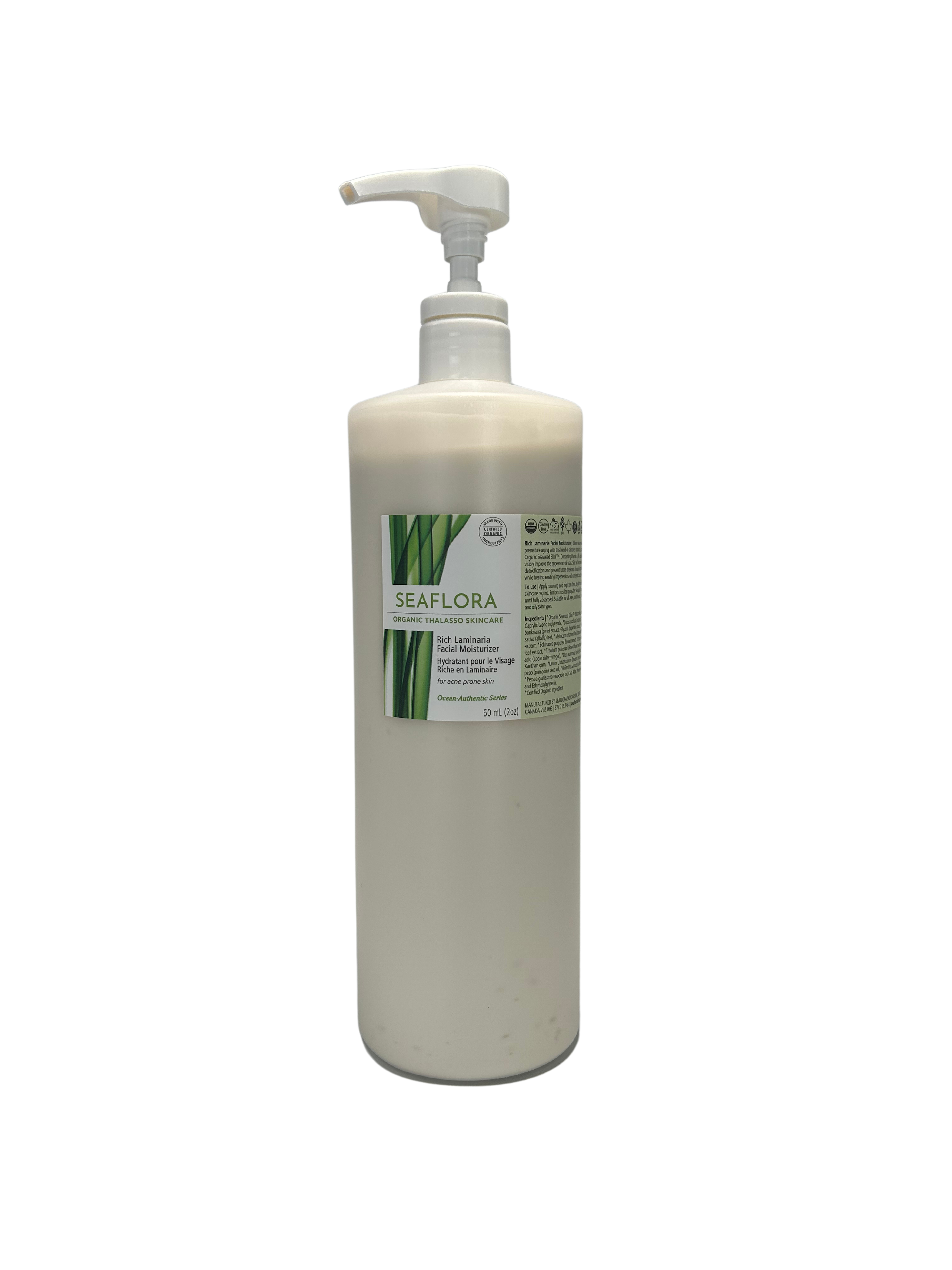 - Dispense a small amount of Rich Laminaria Facial Moisturizer